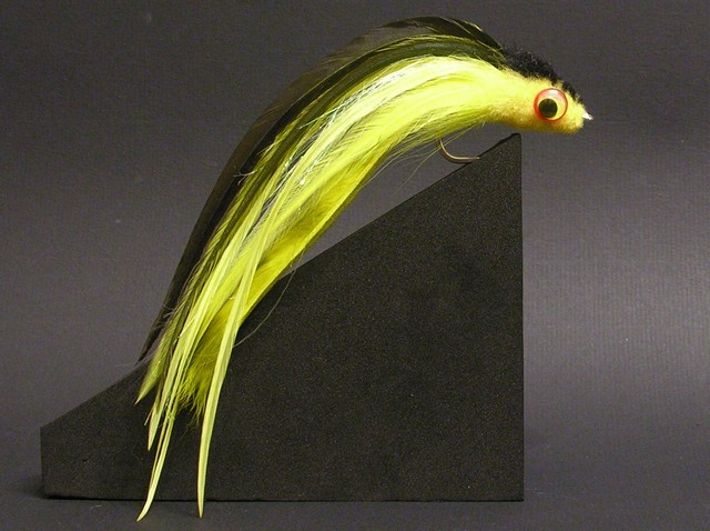 - light yellow bucktail around the bottom of the hook shank, and olive bucktail around the top